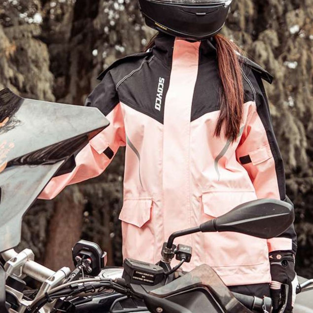 女性ライダーのための高機能レインウェア。
