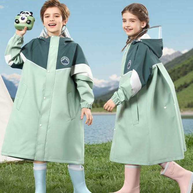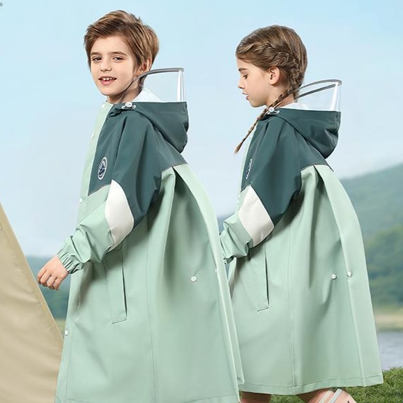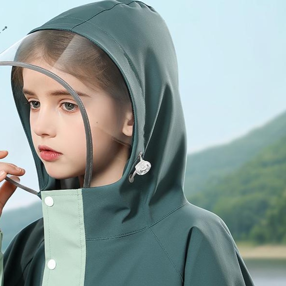 実用的なデザインの子供用レインウェア。長めのシルエットが雨からしっかり守り、フード部分には大きな庇が付いているため、視界を妨げずに安心して外出可能。遊び盛りの子供たちにぴったりのアイテムで、雨の日も楽しく過ごせる。軽量で持ち運びやすく、急な天候の変化にも対応できる一着。