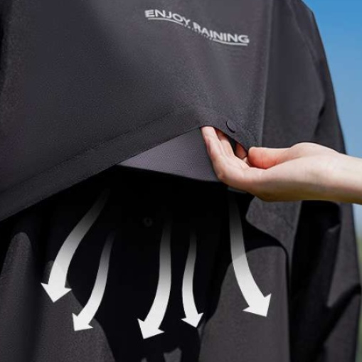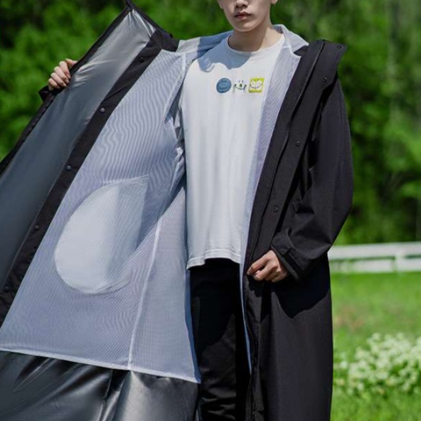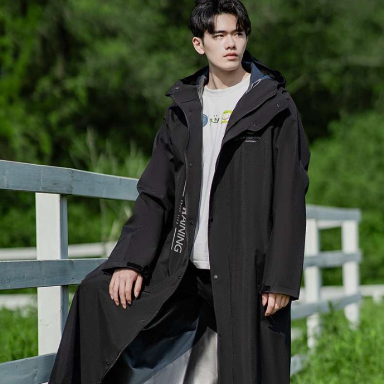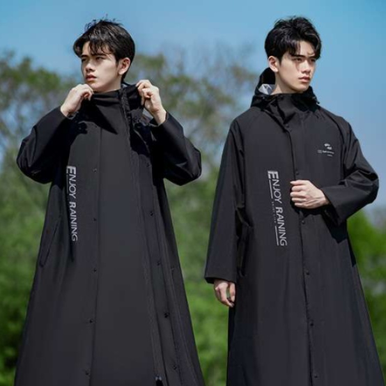 男性向けの防水レインジャケット。全身をしっかり守り、バイクと徒歩の2WAY仕様で多様なシーンに対応。ゆったりとしたデザインが快適な着心地を提供。広がりのある下部設計が足元もガードし、雨の日の移動も安心して楽しめます。スタイリッシュで機能的な一着は、アウトドアや通勤にも最適です。