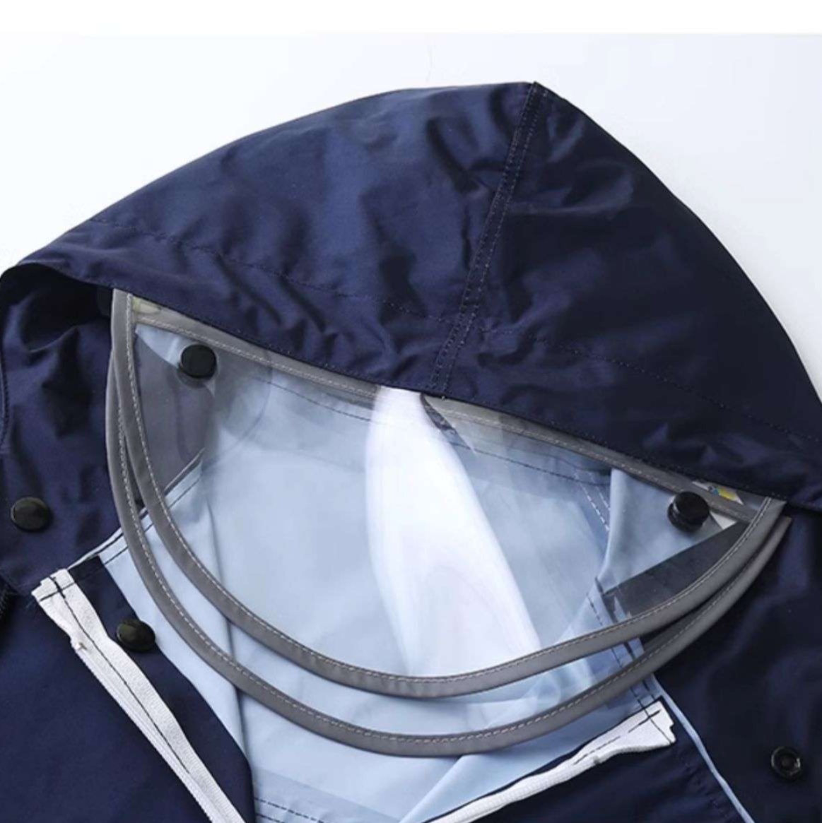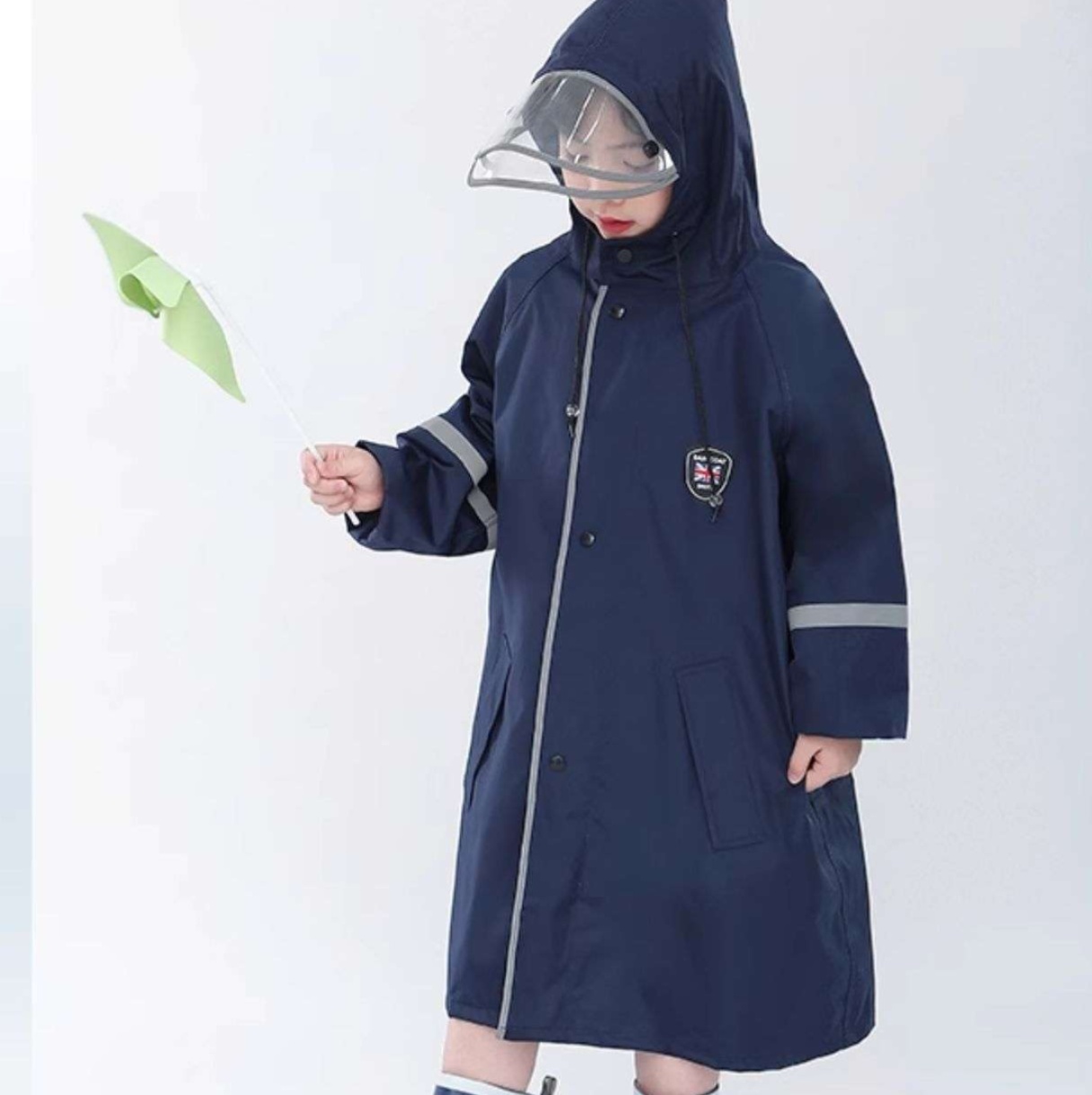 子供用レインウェアの決定版。視界を確保できる透明フード付きで、反射テープで夜道も安心。