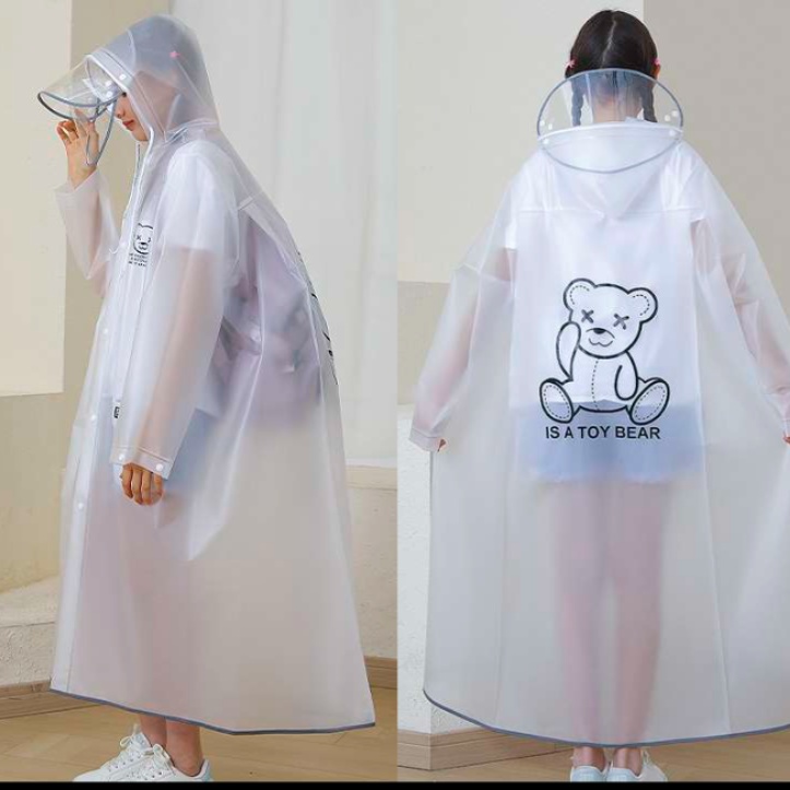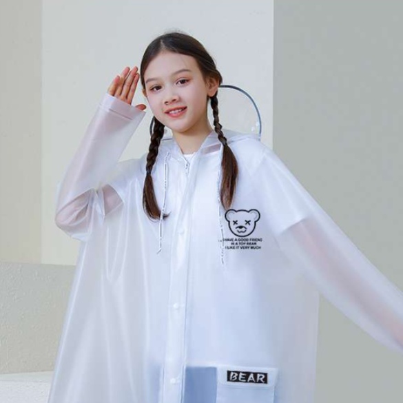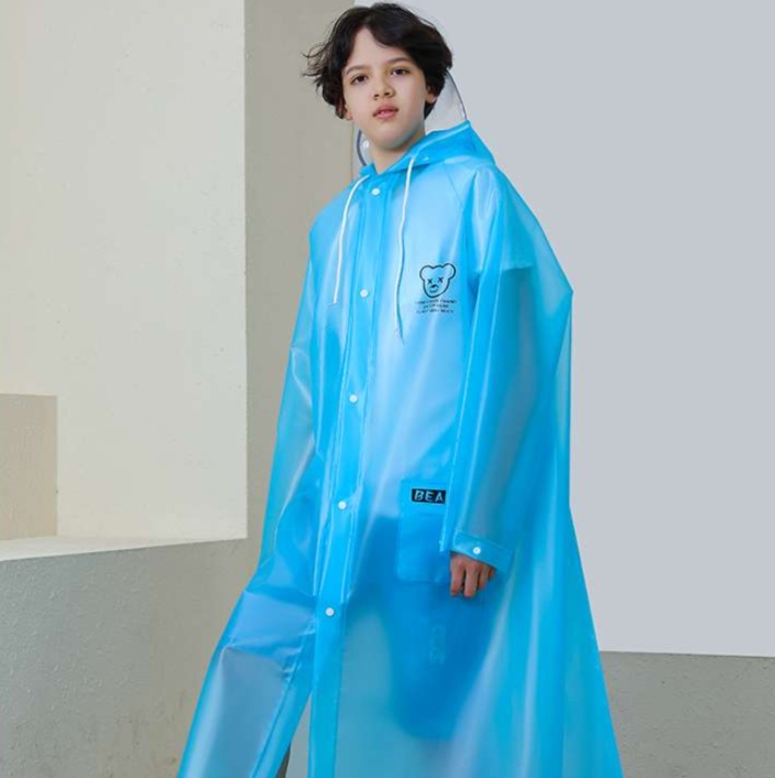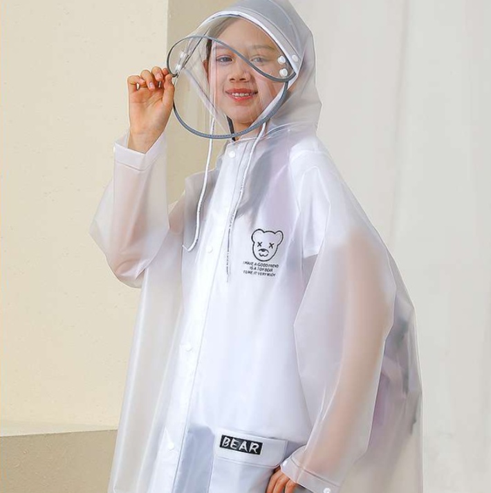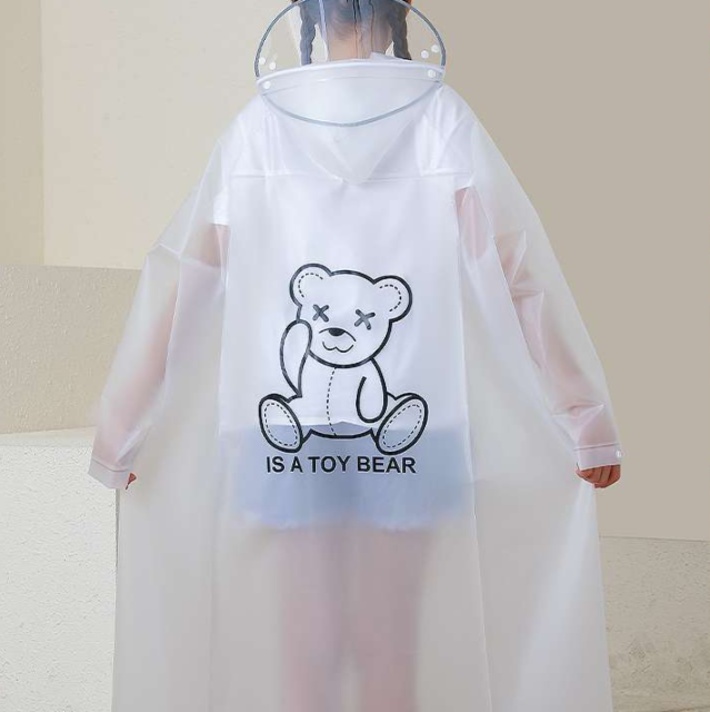 子供用レインウェアには、取り外し可能な透明フェイスガードが付属。視界を確保しつつ、雨や風から顔をしっかりと守ります。愛らしいくまのイラストが施されており、雨の日でも楽しく、安心してお出かけできるデザインです。撥水性も優れており、様々な天候に対応。お子様の冒険心を引き出す、必須アイテムです。