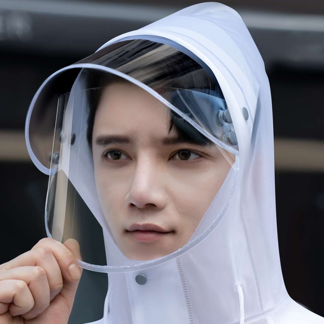視界を確保しながら雨から顔を守る実用的な二重構造デザイン