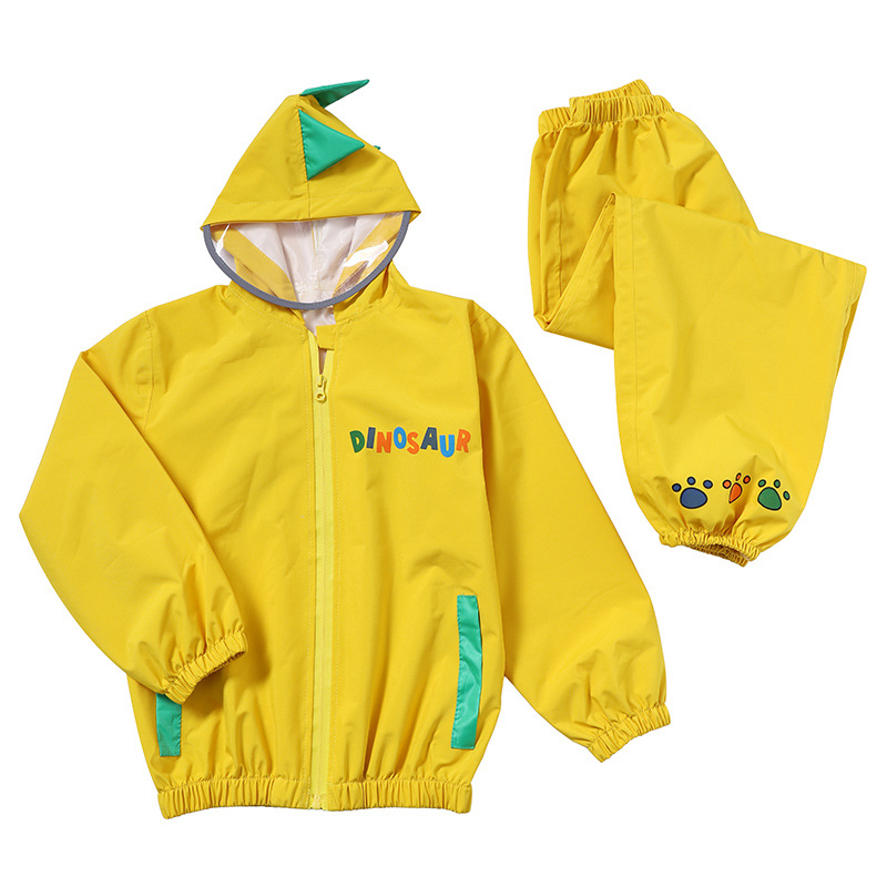 可愛らしい恐竜などのワンポイント刺繍が施され、通園や通学、外遊びに最適なレインウェアです。