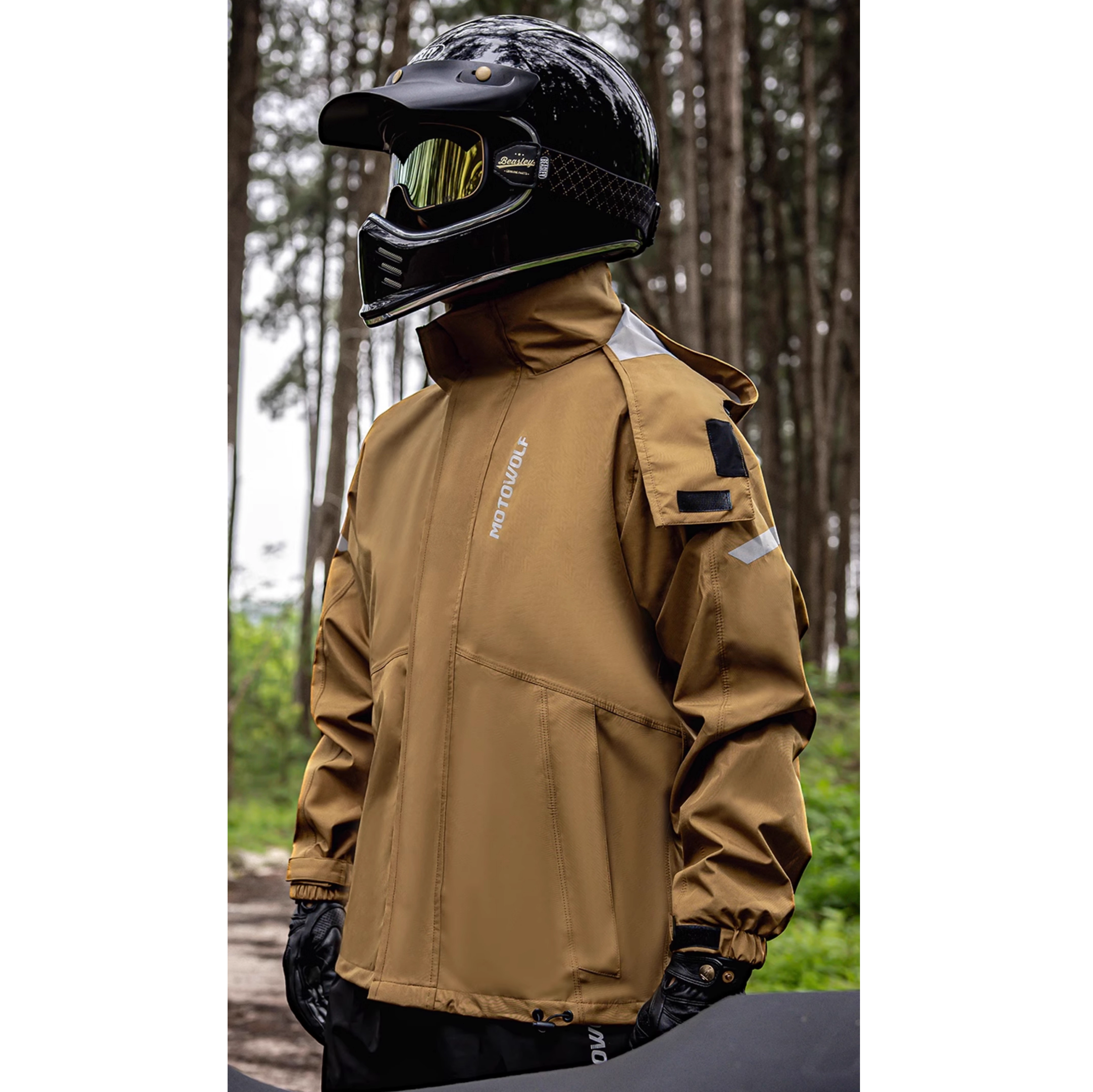 動きやすい立体裁断と防水シームで、雨天時の長距離ライディングも快適に