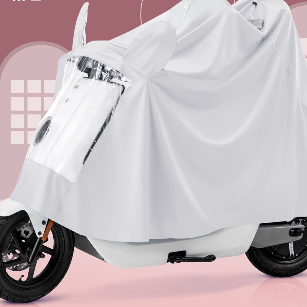 計器盤が見える透明窓付きで安全運転をサポートし、リュックを背負ったまま着用できるゆったり設計のレインコートです。