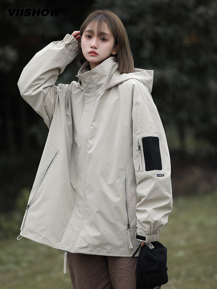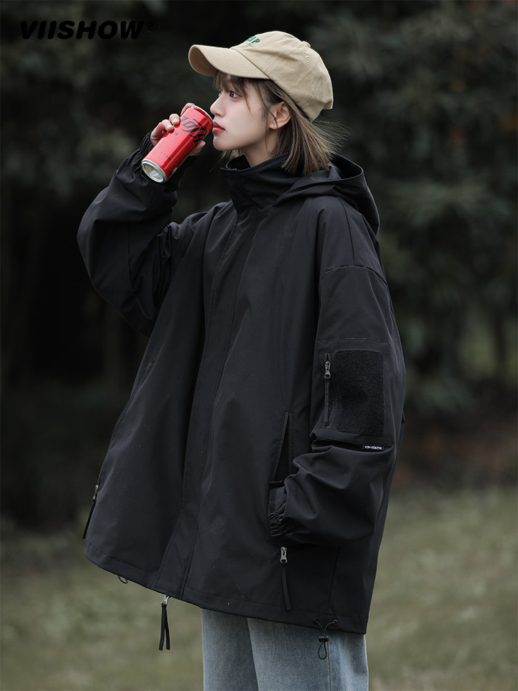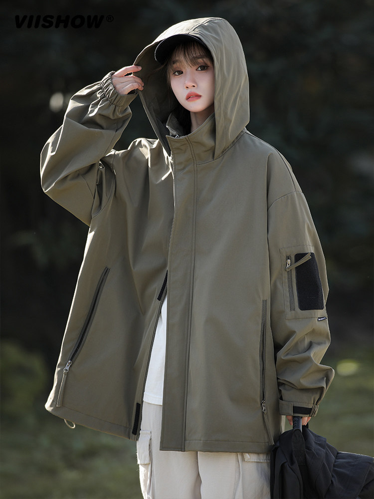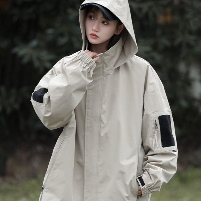 裾のドローコードで風の侵入を防ぎ、フード付きで急な雨にも安心です。