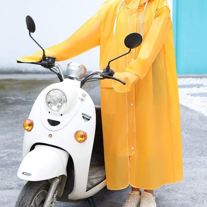 こちらのレインジャケットは膝下までしっかりカバーする長めの丈で、雨天時の運転や通勤通学時も安心してご使用いただけます。