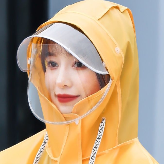 フード付きで頭部もしっかり保護し、前面はスナップボタンとジッパーの二重構造で防水性を高めました。