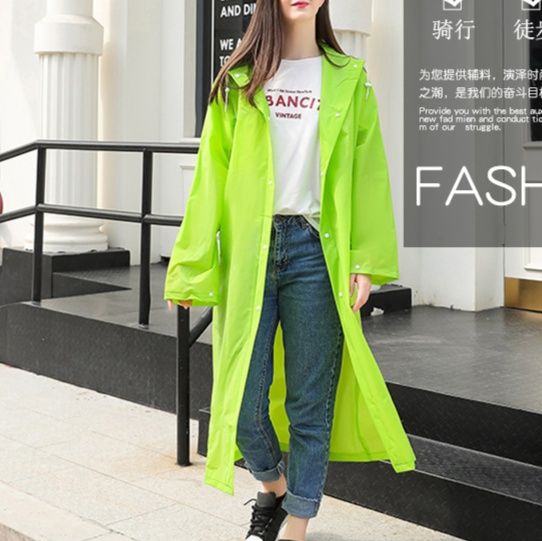 膝下までしっかりカバーするロング丈で雨の日の通勤通学に最適なレインウェアとなっています。