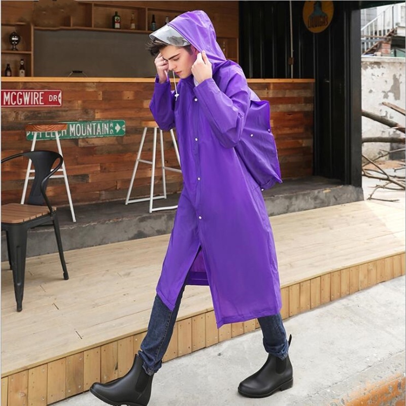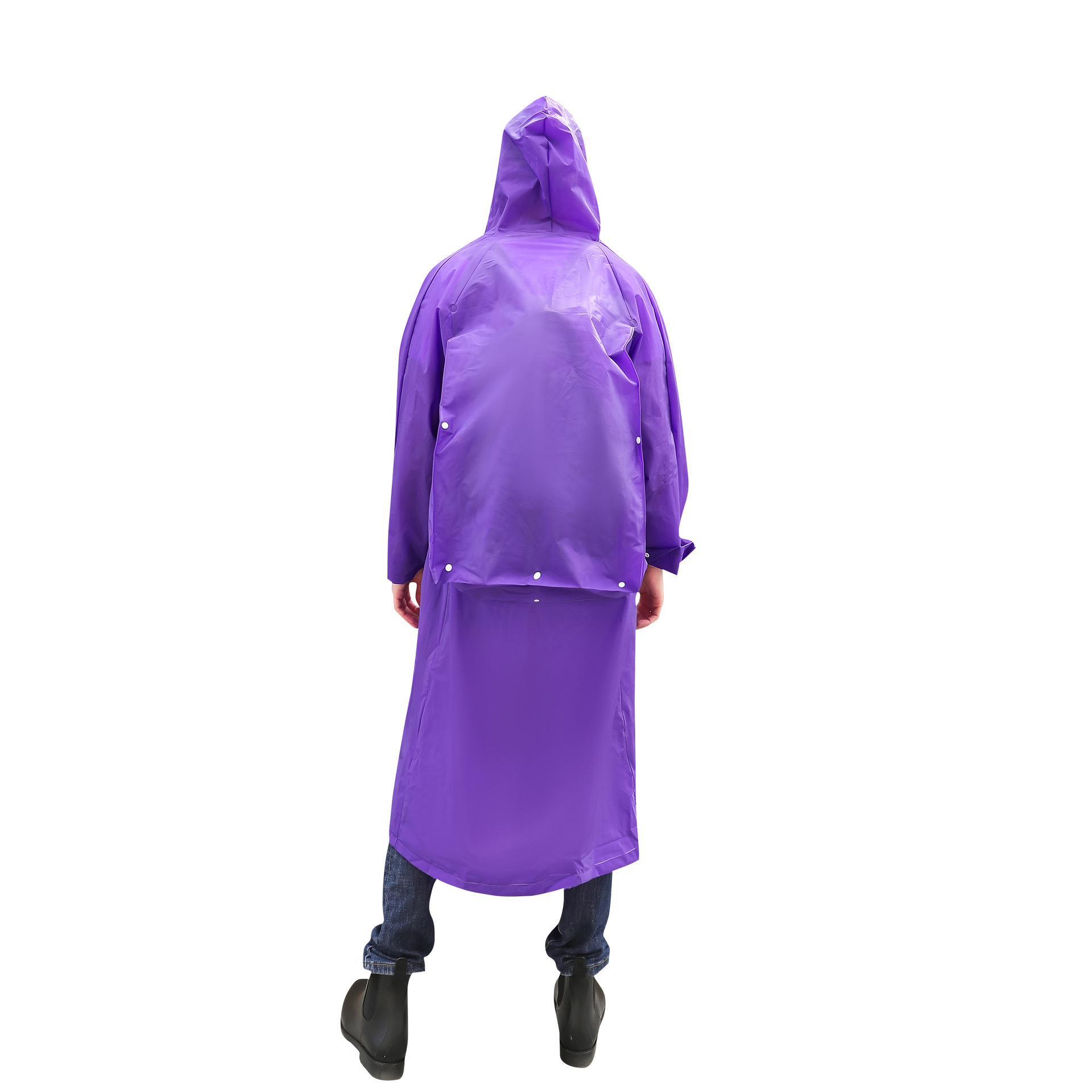 リュックを背負ったまま着用できる背面開口設計のレインコートです。